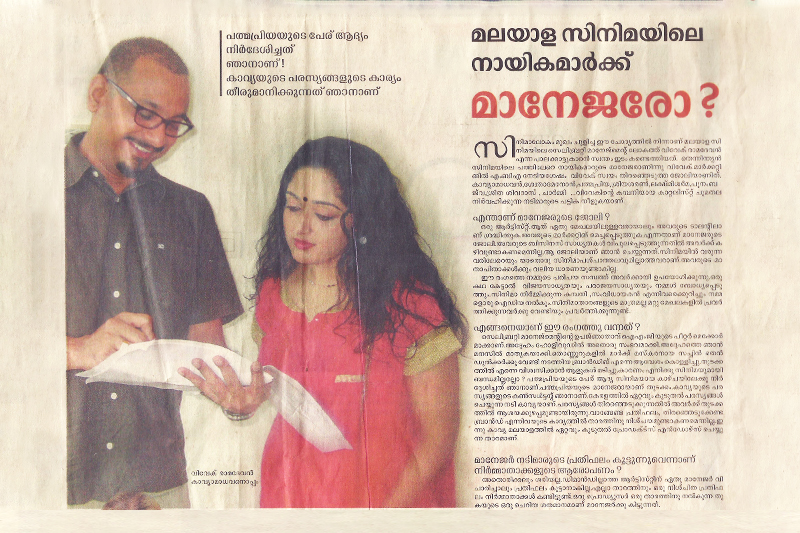 Vivek Ramadevan shares his views with Malayala Manorama Daily on a first in Malayalam Cinema - 'Artist Management'.